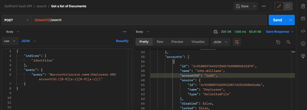 We see that the identities in our result set have an account on the Employees source with an account id that follows the number-letter-number-letter pattern: