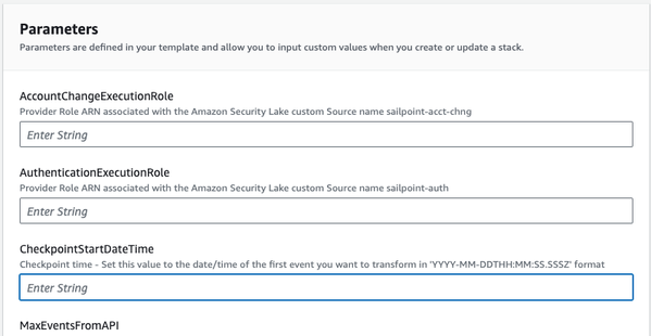 | AuthenticationExecutionRole | Provider Role ARN associated with the Amazon Security Lake custom Source name sailpoint-auth. |