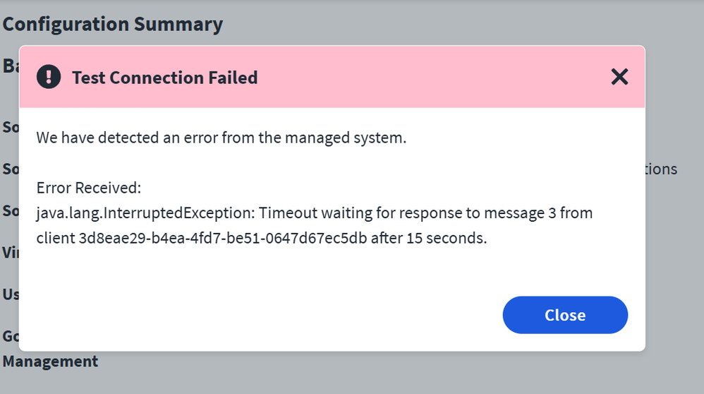 Your connection isn’t working because you’re probably using the wrong lab guide. Please login to Identity University and access the student materials that are associated with your tenant, and follow the instructions in the lab guide provided there. Your connection will be to the Directory (Open LDAP) source.